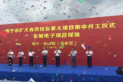 2017年7月10日,海寧市擴(kuò)大有效投資重大項(xiàng)目集中開(kāi)工儀式在長(zhǎng)安鎮(zhèn)高新區(qū)舉行。開(kāi)工儀式的主會(huì)場(chǎng),設(shè)于東城電子有限公司“年產(chǎn)3萬(wàn)套智能存取設(shè)備和2500套智慧小屋”項(xiàng)目現(xiàn)場(chǎng),董事長(zhǎng)陳長(zhǎng)林代表東城電子有限公司在本次開(kāi)工儀式上發(fā)表講話(huà)。